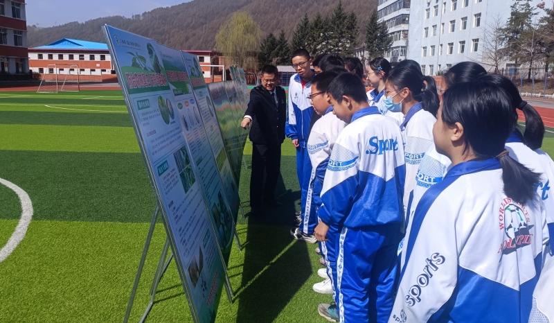 “大家看,這個(gè)就是松材線蟲(chóng),被它感染的松樹(shù),針葉會(huì)呈黃褐色或紅褐色,整株樹(shù)木都會(huì)干枯死亡,被稱為松樹(shù)的癌癥?!痹诘谌袑W(xué)操場(chǎng)上,工作人員用通俗易懂的語(yǔ)言向宣傳展板前的學(xué)生介紹了松材線蟲(chóng)、銀杏大蠶蛾、落葉松毛蟲(chóng)等林業(yè)有害生物的形態(tài)特征、生物學(xué)特性、防治措施等知識(shí),讓學(xué)生們充分了解林業(yè)有害生物防控知識(shí),從小養(yǎng)成“防控生物災(zāi)害,維護(hù)生態(tài)安全”意識(shí)。